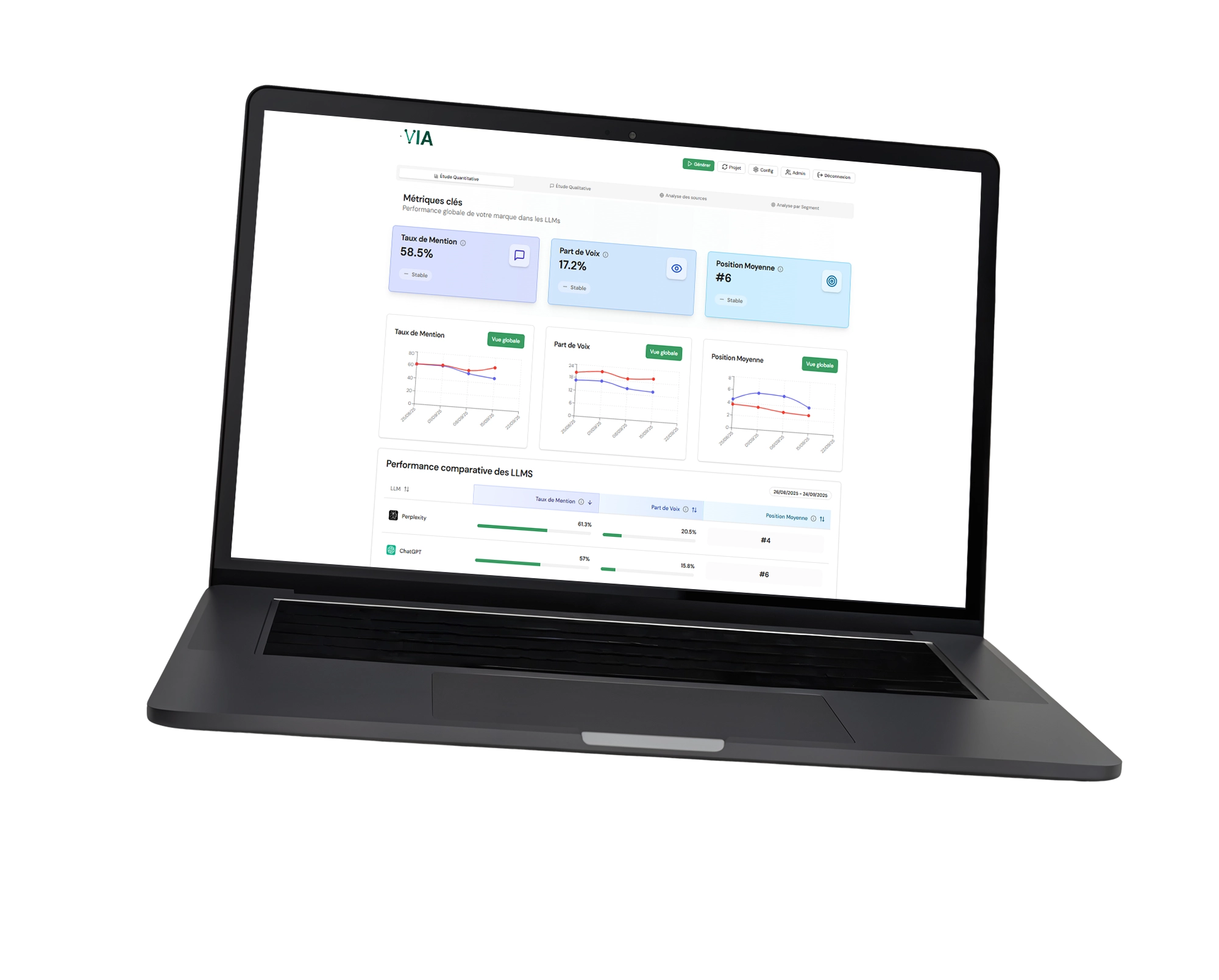 VIA : le dashboard pour piloter votre visibilité dans les IA.
