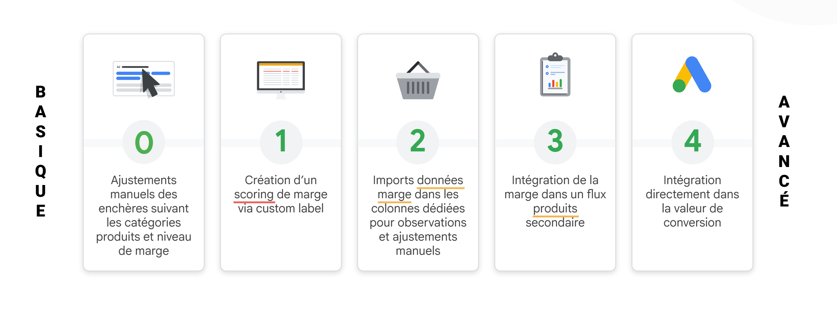 - Permet de structurer les campagnes par niveau de marge et adapter la stratégie d’enchères
