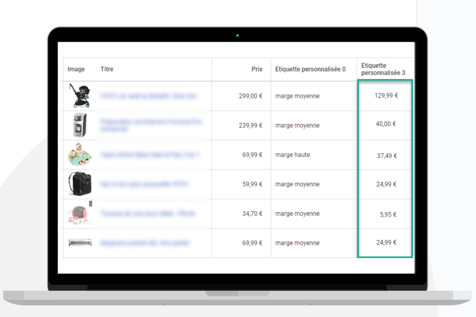 Utilisez les custom labels pour définir des segments de marge selon vos produits.
